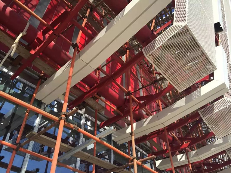 一般多采用穿孔铝板,但是这种材料造价较高。我们选择了更加环保的水泥纤维板,造价不仅大大降低,而且其更加结实、平整。”